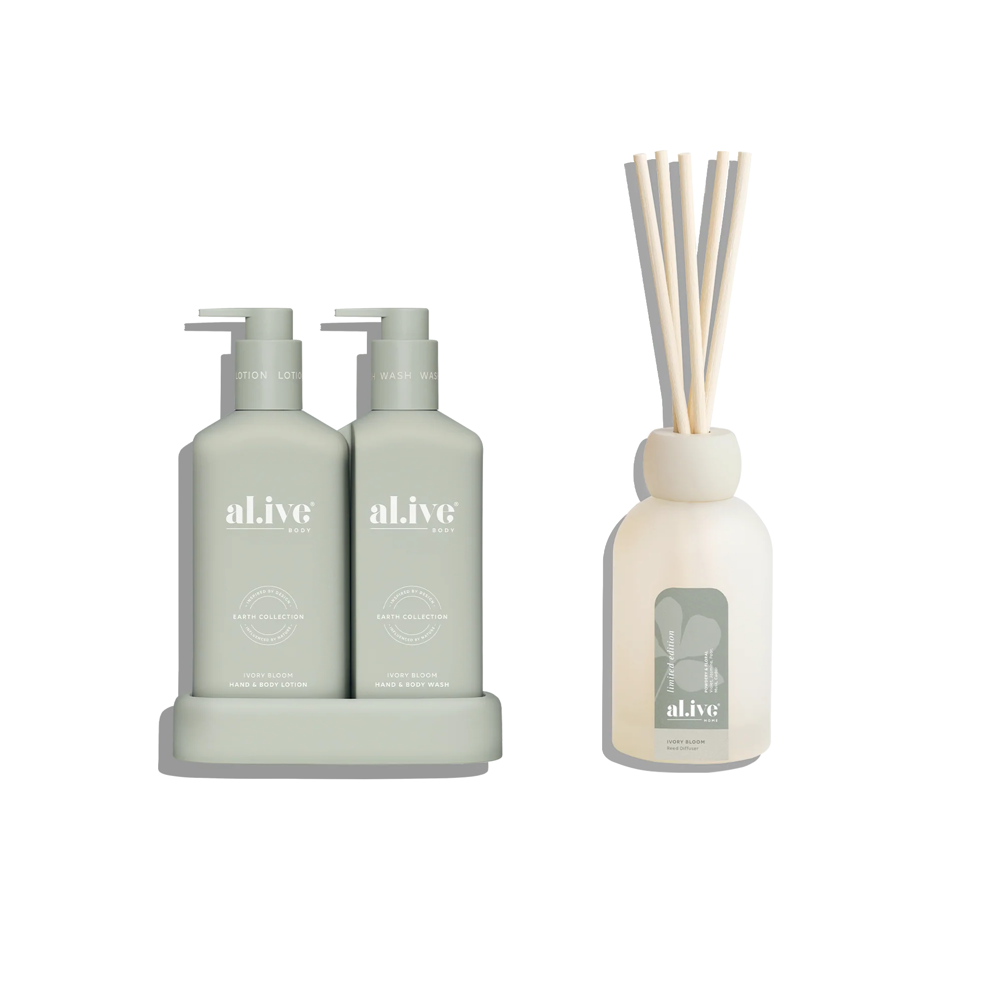 Designed for those who value cohesive design and intentional rituals, this bundle pairs everyday body care with subtle, ambient fragrance to create a calm, consistent sensory experience across spaces.